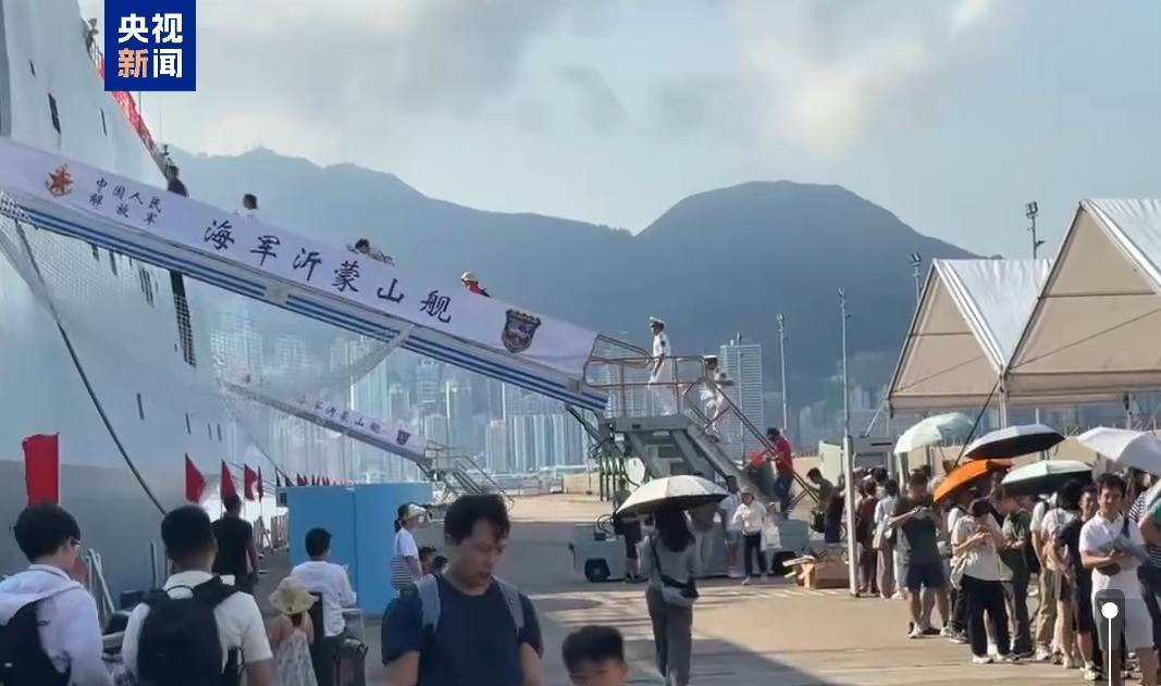 r总台记者 马媛:现在我们登上了沂蒙山舰,前甲板区域主要用来展示舰载武器装备。沂蒙山舰全长210米,目前停靠在昂船洲码头西岸。我们朝北岸看,那里停靠的就是戚继光舰,从这个角度可以欣赏到整个舰的英姿。这次开放活动较之前山东舰艇编队访港时开放的区域更多,不仅开放前后甲板,舱室内的很多区域也面向公众开放。这次香港市民可以大饱眼福了。